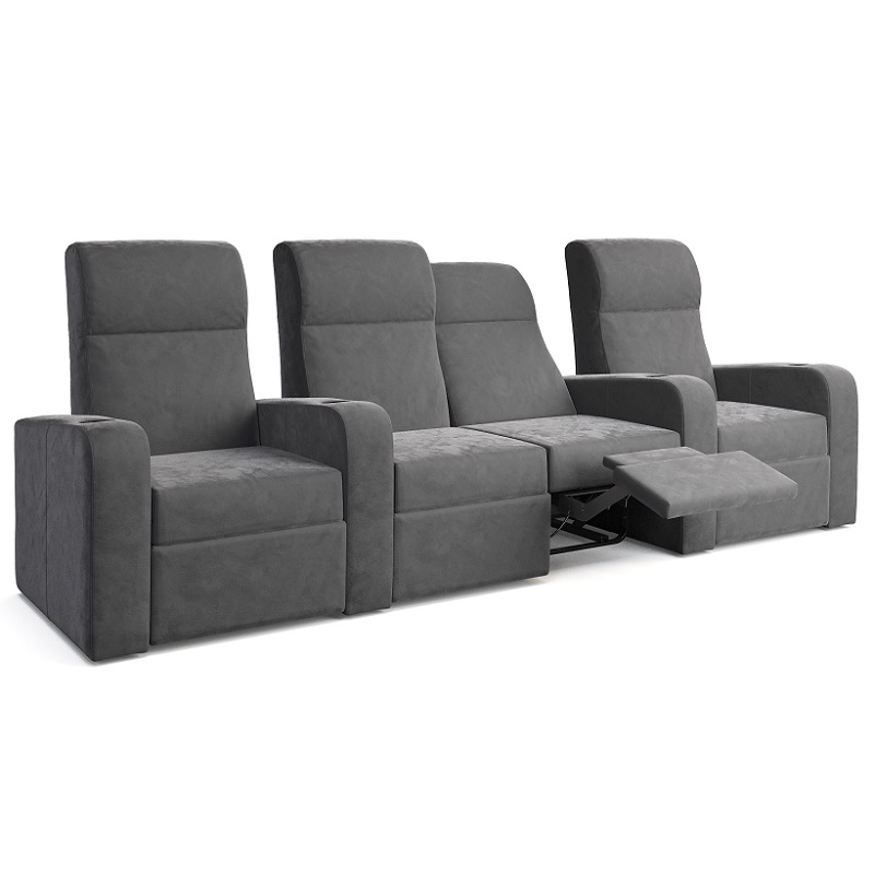 Gracias al uso de un mecanismo de inclinación, como también se conoce en los asientos de aviones, nuestra butacas de cine en casa Lisboa solo necesitan una distancia a la pared de 30cm para moverse completamente a la posición tumbada. El ahorro de espacio también es de gran beneficio cuando se instalan dos o más filas de butacas. El reclinable mecanismo de la butaca le permite reclinarse completamente mientras se mantiene el asiento cerca de la pared. Este mecanismo ahorra espacio innecesario detrás de la butaca para maximizar el uso de su sistema de cine en casa. El motor silencioso y suave permite una experiencia reclinable silenciosa y el diseño, mientras garantiza el espacio mínimo detrás de la butaca.