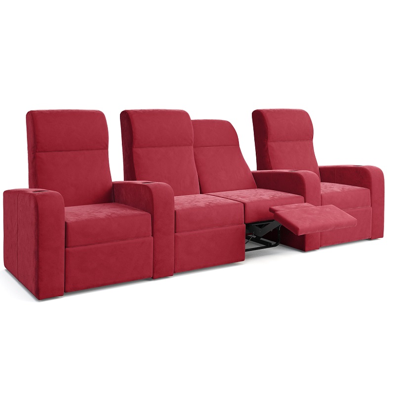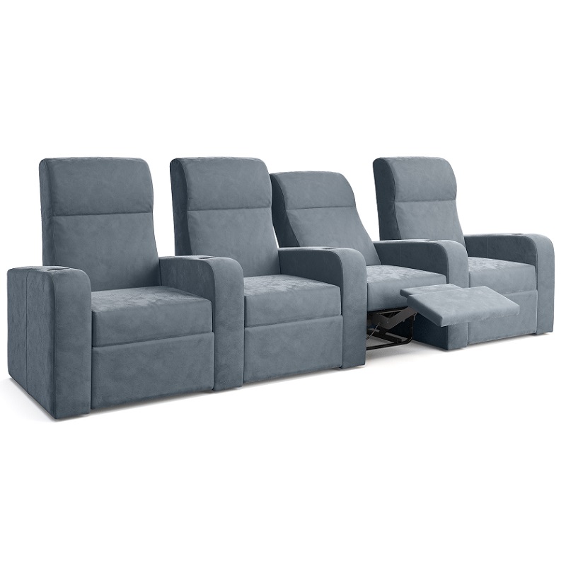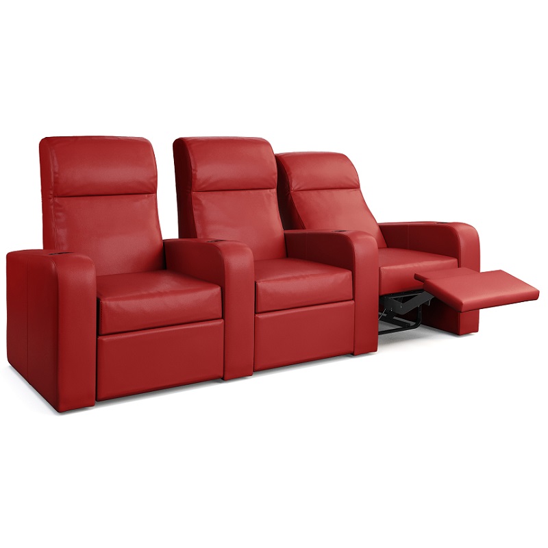 Gracias al uso de un mecanismo de inclinación, como también se conoce en los asientos de aviones, las butacas de cine en casa solo necesitan una distancia a la pared de 30cm para moverse completamente a la posición tumbada. El ahorro de espacio también es de gran beneficio cuando se instalan dos o más filas de butacas.